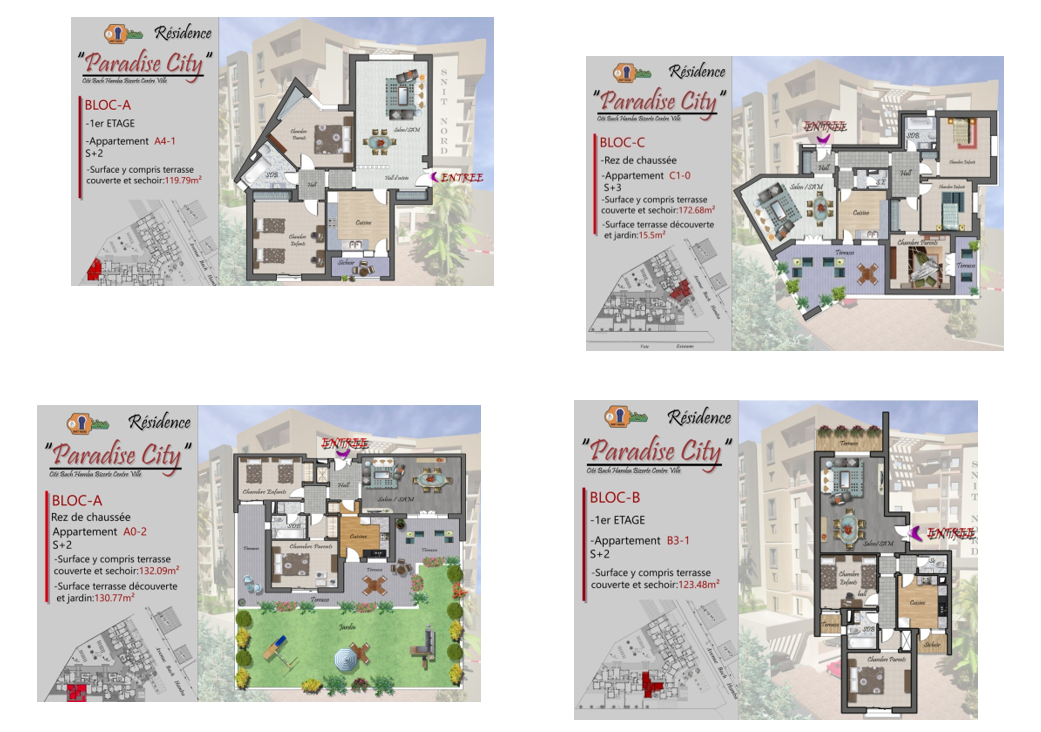 Volets roulants en pvc motorisés.Sanitaire de premier choix et de qualité.Faux plafond en staff.Pré-installation chauffage Central.Ascenseurs.